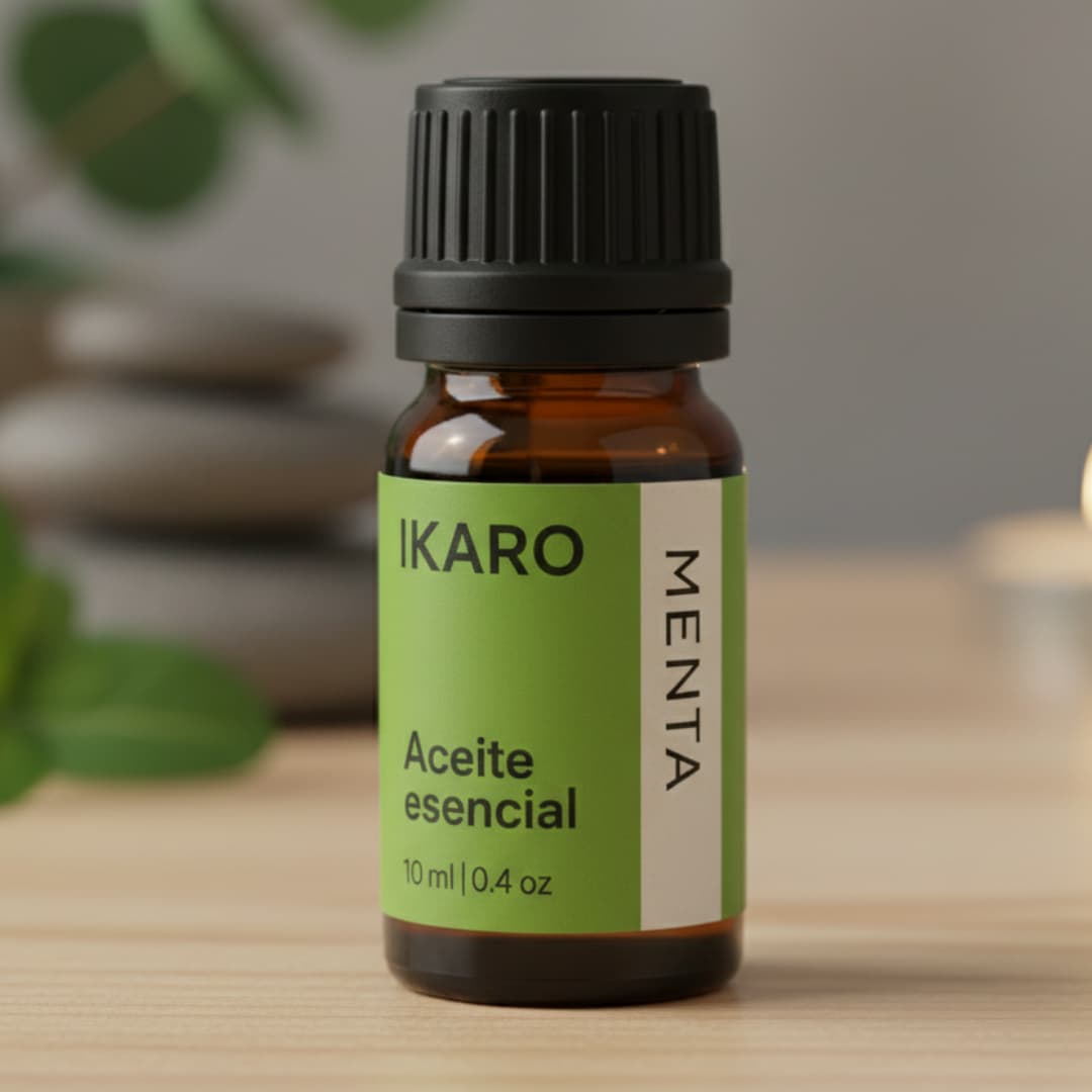 El aceite esencial de menta (Mentha piperita) de IKARO es 100% puro, con aroma mentolado, fresco y penetrante, ideal para uso aromático y cosmético responsable (siempre diluido).